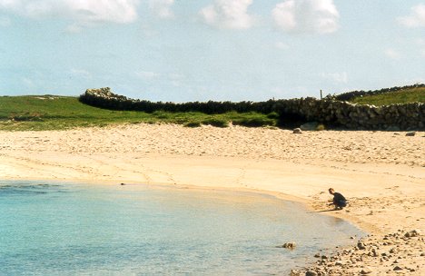 Strandidylle bei Sonnenbrandwetter westlich von Spiddal (County Galway). Helgard bei einer ihrer Lieblingsbeschäftigungen: Muscheln sammeln.